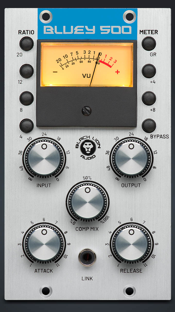 We firmly believe that everybody deserves a li’l Bluey in their life, so we’re proud to introduce another li’l Bluey - the Bluey 500 - ready to add that unmistakable blue-striped mojo to your 500-series rack. You get all the squeeze, heft, and grit of the original Bluey in just two 500-series slots — a fraction of the original’s footprint.