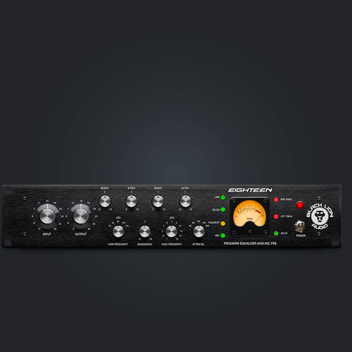Eighteen starts with a vintage-inspired preamplifier, providing a creamy, yet punchy response. We’ve topped that off with a passive inductor-based program equalizer, and outputs controls for pushing the analog stages to pure overdriven-bliss.