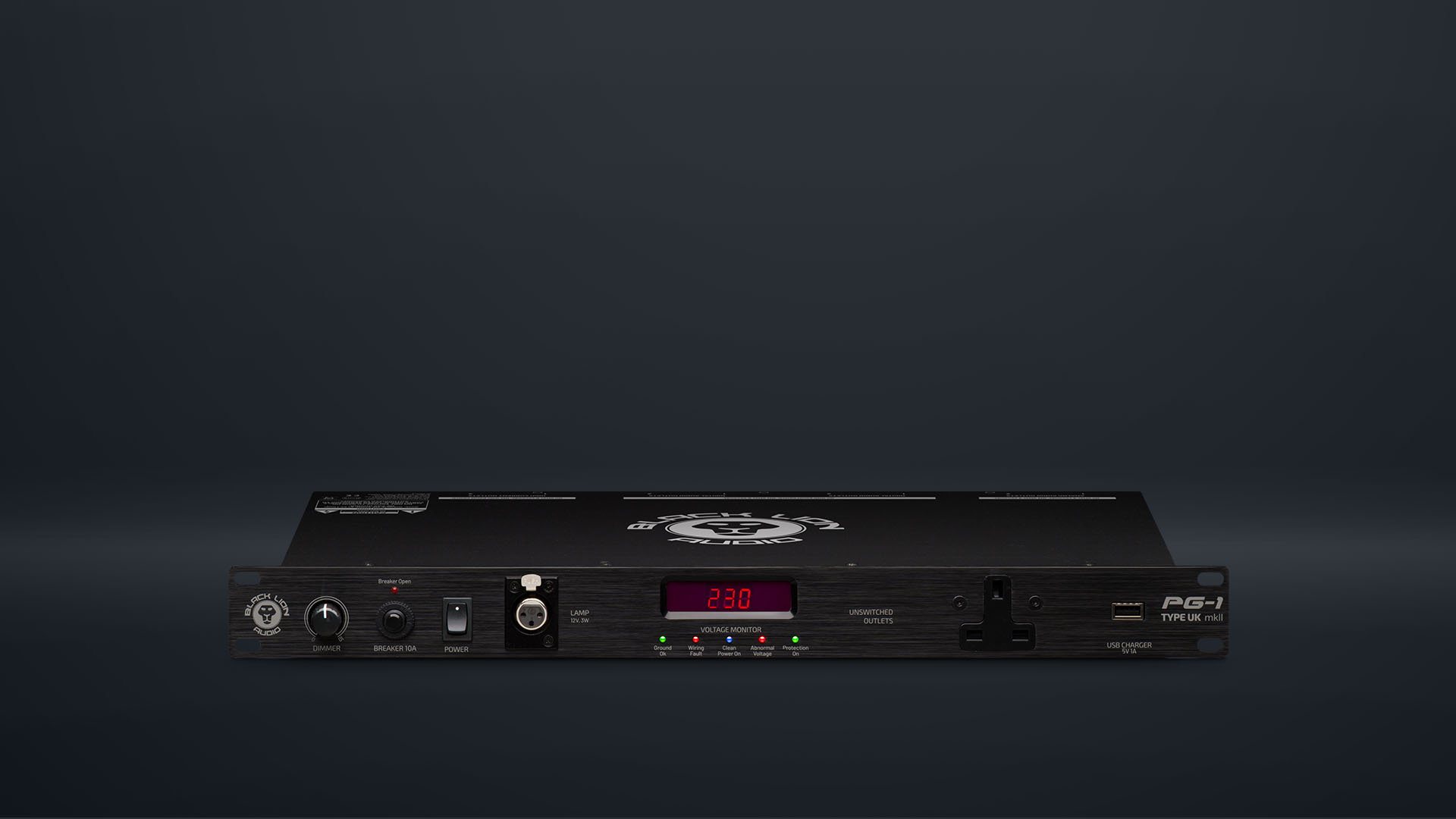 The PG-1 Type UK mkII features a bank of eight switched, filtered and surge protected outlets on the back panel — combined into three groups (Digital Audio, Analog Audio, and High Current.) The High Current outlets are time delayed, always ensuring that your speakers and power amplifiers are the last to turn on, and the first to turn off — this prevents the dreaded “pop” that can occur if speakers receive power at the same time as your sound sources. The PG-1 Type UK mkII also features one filtered convenience outlet, a USB port for device charging, and an XLR lamp connection on the front panel.