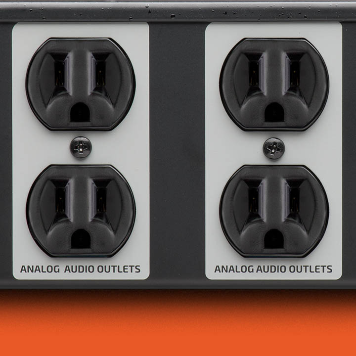 The PG-2 features a bank of twelve switched, filtered and surge protected outlets on the back panel — combined into four groups (Digital Audio x2, Analog Audio, and High Current). The High Current outlets are time delayed, always ensuring that your speakers and power amplifiers are the last to turn on, and the first to turn off — this prevents the dreaded “pop” that can occur if speakers receive power at the same time as your sound sources. The PG-2 also features 2 filtered convenience outlets, and a USB charger on the front panel, as well as XLR lamp connectors on both the front and back panels.