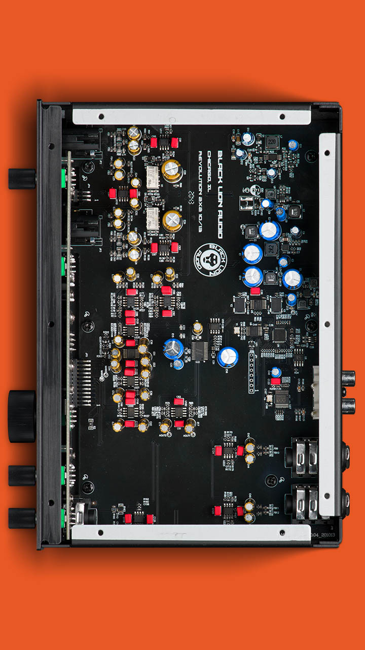 Hi-fi digital design alone isn’t enough to cut it — it takes a serious analog circuit for the very best capture and playback. Revolution 2x2 is built with the most cutting edge, high-end ICs. High-end Vishay, Nichicon, and Wima capacitors are used throughout the entire circuit. All internal gain-staging has been optimized for the very lowest signal-to-noise ratio. All of the analog I/O has not only been built with the finest components, but are fully decoupled and balanced — right to the very core of the convertor! Most manufacturers do not follow this practice, and that allows extra noise contamination during both capture and playback.